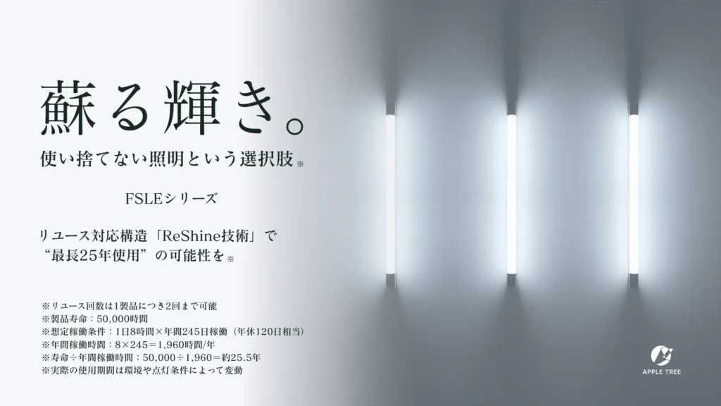 新時代の直管LED「FSLE」―高効率×高品質×環境配慮×リユース対応―